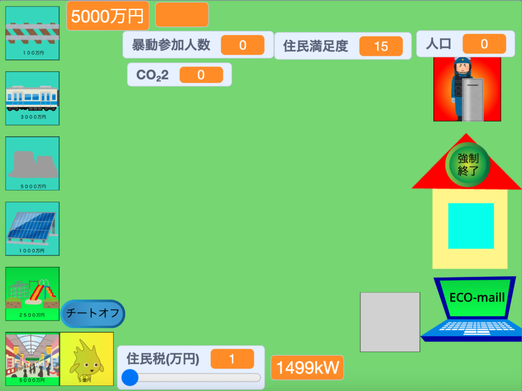 遊びながら環境にやさしいまちづくりを学べるシミュレーションゲームです。